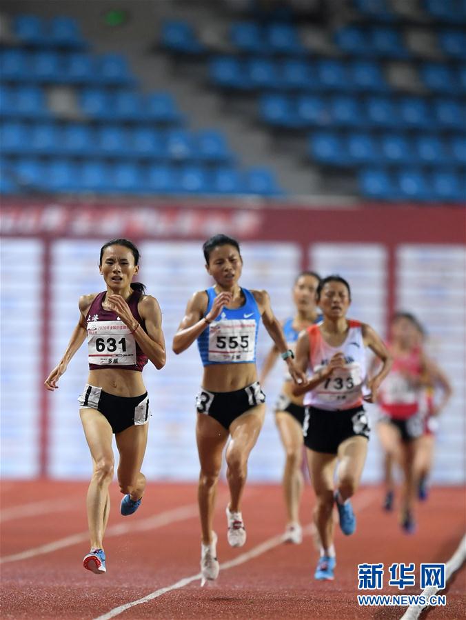9月17日,上海队选手许双双(左一)在女子5000米决赛中,最终她以16分18秒08的成绩夺冠。 当日,在浙江省绍兴市举行的2020年全国田径锦标赛进入第三个比赛日。 新华社记者贾宇辰摄