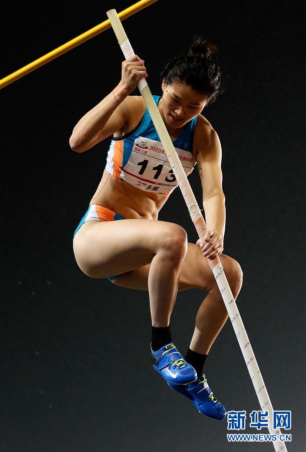 9月17日,安徽队选手宋婷婷女子撑杆跳高决赛中试跳4米40的高度失败。但她最终仍以一次跳过4米30高度的成绩获得冠军。 当日,在浙江省绍兴市举行的2020年全国田径锦标赛进入第三个比赛日。 新华社记者 王丽莉 摄