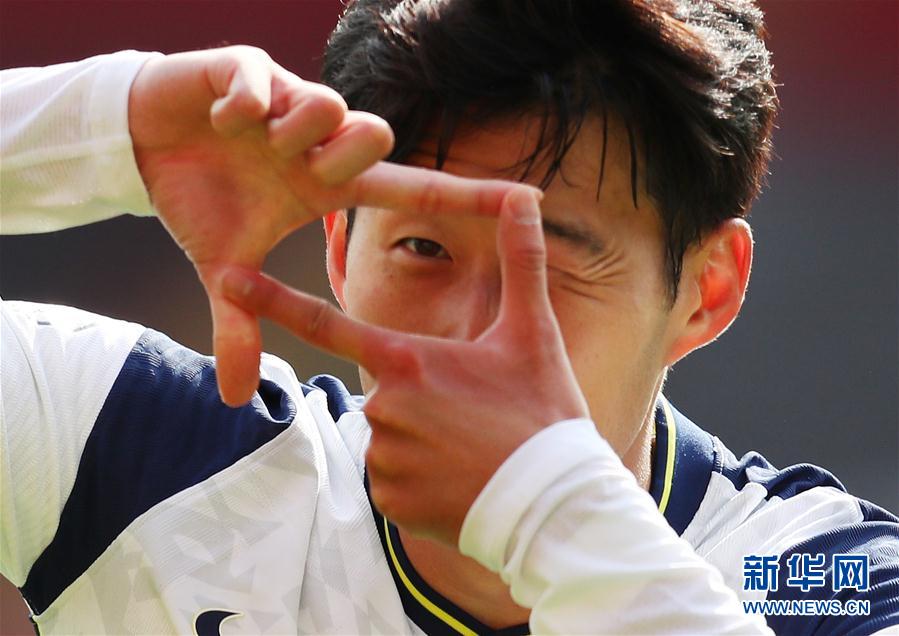 9月20日,托特纳姆热刺队球员孙兴民在比赛中庆祝进球。 当日,在2020-2021赛季英格兰足球超级联赛第二轮比赛中,托特纳姆热刺队客场以5比2战胜南安普敦队。 新华社/路透
