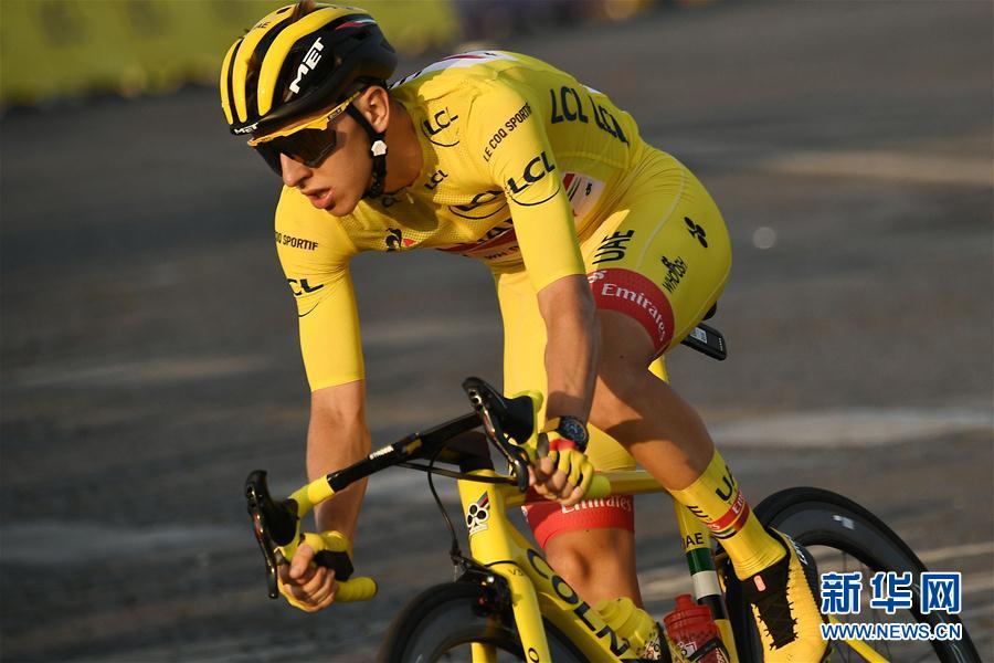 9月20日,阿联酋航空车队斯洛文尼亚车手波加查尔在比赛中骑行。 当日,2020环法自行车赛在巴黎香榭丽舍大街落下帷幕。阿联酋航空车队的波加查尔以87小时20分05秒的总成绩,成为环法历史上首位加冕总冠军的斯洛文尼亚车手。 新华社/法新