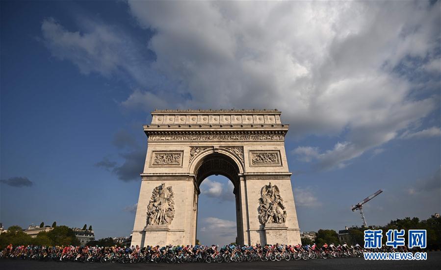 9月20日,参赛选手经过凯旋门。 当日,2020环法自行车赛在巴黎香榭丽舍大街落下帷幕。阿联酋航空车队的波加查尔以87小时20分05秒的总成绩,成为环法历史上首位加冕总冠军的斯洛文尼亚车手。 新华社/法新