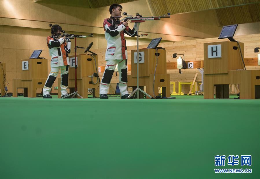 9月22日,余浩楠(右)/杨倩在比赛中。 当日,在湖北宜昌进行的2020年全国射击冠军赛(步枪项目)10米气步枪混合团体决赛中,国家集训队选手余浩楠/杨倩以17比11战胜队友徐红/惠子程,获得冠军。 新华社记者肖艺九摄