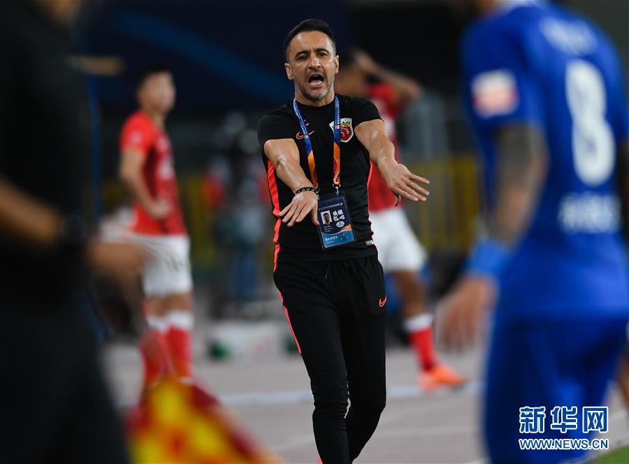 9月22日,上海上港队主教练佩雷拉在场边指挥。 当日,在2020赛季中国足球协会超级联赛第一阶段(苏州赛区)第12轮比赛中,上海上港队以1比0战胜石家庄永昌队。 新华社记者 季春鹏 摄