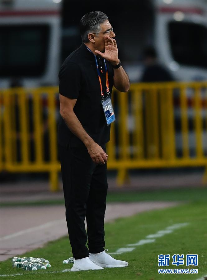 9月22日,石家庄永昌队主教练古特比在场边指挥。 当日,在2020赛季中国足球协会超级联赛第一阶段(苏州赛区)第12轮比赛中,上海上港队以1比0战胜石家庄永昌队。 新华社记者 季春鹏 摄