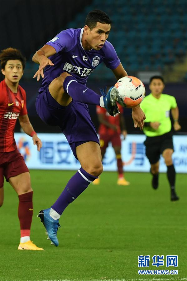2020赛季中超联赛第一阶段第12轮全部八场比赛于9月21日、22日两天结束争夺。21日,在大连赛区的四场比赛中,排名该赛区榜首的广州恒大凭借艾克森和保利尼奥的进球2:1战胜排名垫底的河南建业。上海申花与江苏苏宁的“长三角德比”则以互交白卷告终。山东鲁能2:1力克深圳佳兆业,广州富力队则在伤停补时阶段1:0绝杀大连人队。22日,在苏州赛区进行的四场比赛中,上海上港队和北京国安队双双获胜后已经稳居赛区前两名,河北华夏幸福队绝杀天津泰达队升至第三,武汉卓尔队0:1输给重庆当代队后,已跌至第六位。 天津泰达 0-1 河北华夏幸福 9月22日,在2020赛季中超联赛第一阶段苏州赛区第12轮比赛中,天津泰达对阵河北华夏幸福。 本场比赛唯一进球出现在比赛补时阶段,河北华夏幸福队利用一次角球机会,丁海峰从左侧开出角球,队友马尔考空中接力头球破门,上演补时绝杀好戏。天津泰达0:1不敌河北华夏幸福。 图为9月22日,天津泰达队球员桑德罗·利马在比赛中停球。 新华社记者韩瑜庆摄