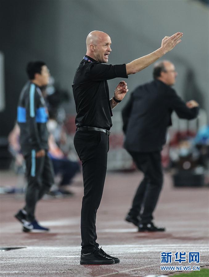9月24日,深圳佳兆业队主教练约尔迪·克鲁伊夫在场边指挥比赛。 当日,在2020赛季中国足球协会超级联赛第一阶段(大连赛区)第13轮比赛中,深圳佳兆业队以3比1战胜大连人队。 新华社记者潘昱龙摄