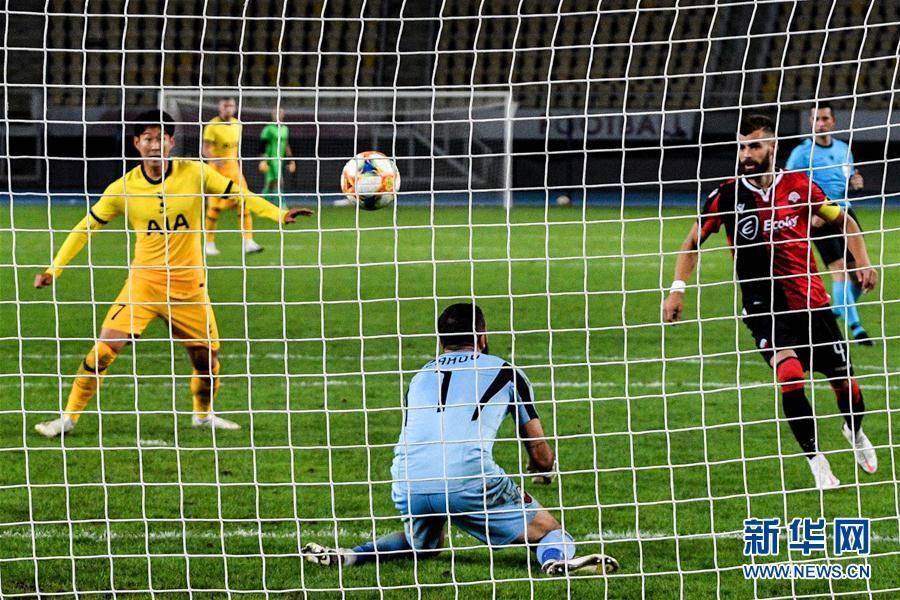 9月24日,斯肯迪亚队守门员扎霍夫(中)在比赛中扑救。 当日,在2020-2021年欧足联欧洲联赛第三轮资格赛中,英格兰托特纳姆热刺队客场以3比1战胜北马其顿斯肯迪亚队,晋级下一轮。 新华社发(托米斯拉夫·格奥尔基耶夫摄)