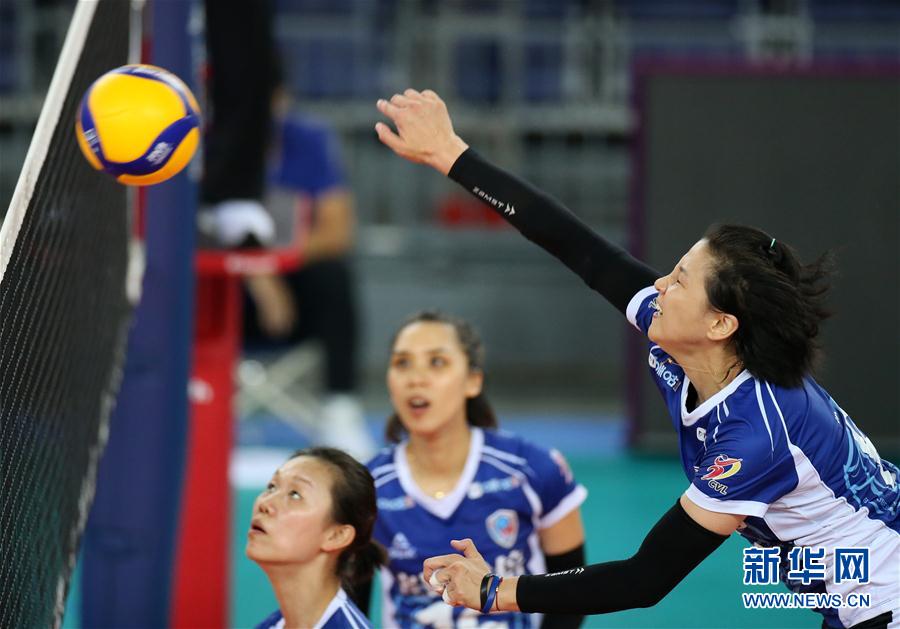 9月27日,上海光明优倍队球员张磊(右)在比赛中扣球。 当日,在广东江门举行的2020年全国女排锦标赛第一阶段A组第五轮比赛中,上海光明优倍队以3比0战胜福建安溪铁观音队。 新华社记者秦朗摄