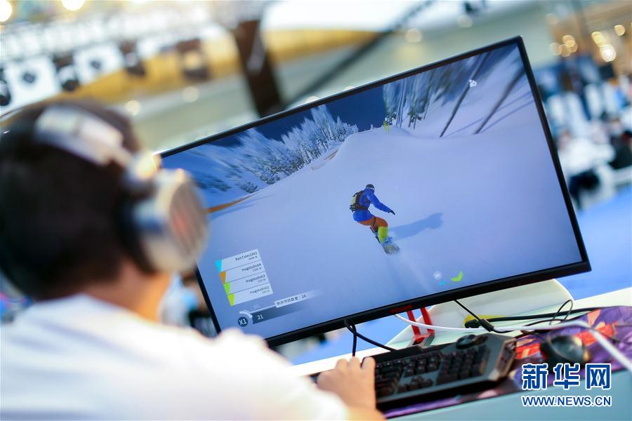 9月27日,参加2020中国数字冰雪运动会广州站赛事的选手在启动仪式上进行电竞比赛。 当日,作为2020中国数字冰雪运动会的揭幕赛——广州站赛事在广州融创雪世界正式打响。本次数字冰雪运动会,是由国家体育总局冬季运动管理中心、广东省体育局、中国冰雪大会组委会联合主办,数字冰雪(北京)科技有限公司承办。主办方旨在通过这项电竞+冰雪的新兴赛事形式落实“带动三亿人参与冰雪运动”和“北冰南展、西扩东进”,带动更多人走进冰雪,了解冰雪,参与冰雪。 新华社发