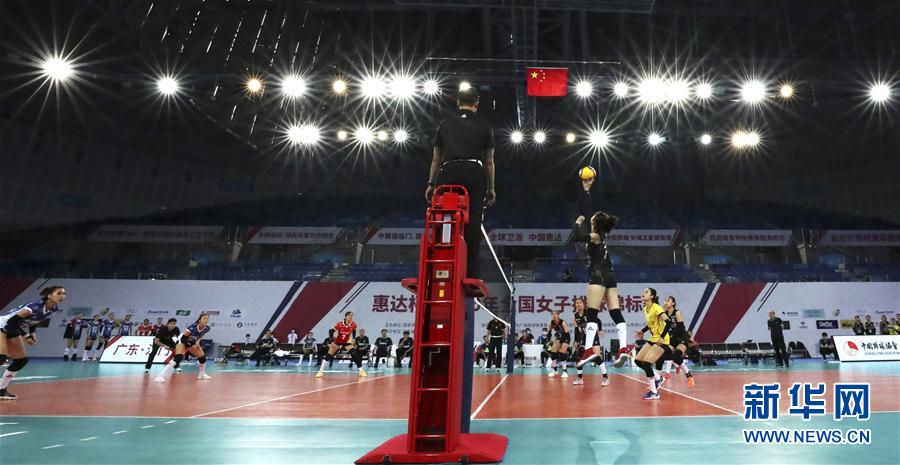 9月27日,福建安溪铁观音队球员沈阳(上)在比赛中扣球。 当日,在广东江门举行的2020年全国女排锦标赛第一阶段A组第五轮比赛中,上海光明优倍队以3比0战胜福建安溪铁观音队。 新华社记者秦朗摄