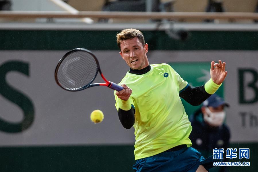 9月27日,诺瓦克在比赛中回球。 当日,在法国巴黎进行的2020年法国网球公开赛男单首轮比赛中,德国选手兹维列夫以3比0战胜奥地利选手诺瓦克,晋级下一轮。 新华社发(奥雷利安·莫里萨尔摄)