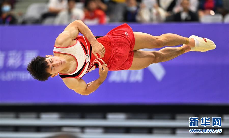 9月27日,山东队选手王灏然在男子自由操决赛中。最终,他以14.466分的成绩获得亚军。 当日,2020年全国体操锦标赛男子自由操决赛在广东肇庆举行。 新华社记者 程敏 摄