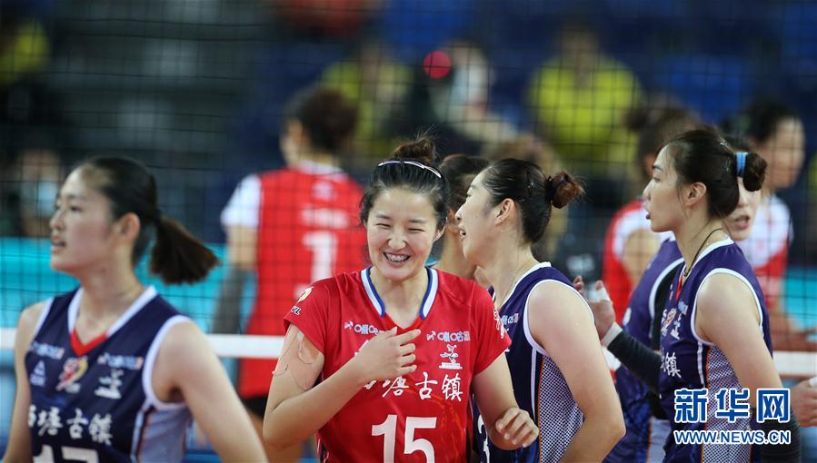 9月28日,浙江嘉善西塘古镇队球员在比赛中庆祝得分。 当日,在广东江门举行的2020年全国女排锦标赛第一阶段B组第四轮比赛中,浙江嘉善西塘古镇队以3比1战胜辽宁华君队。 新华社记者秦朗摄