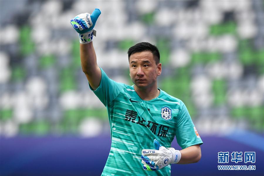 9月28日,天津泰达队守门员滕尚坤在比赛中。 当日,在2020赛季中国足球协会超级联赛第一阶段(苏州赛区)第14轮比赛中,天津泰达队以0比0战平武汉卓尔队。 新华社记者 李博 摄