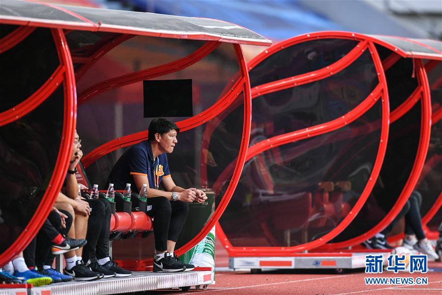 9月28日,武汉卓尔队代理主教练庞利在场边观战。 当日,在2020赛季中国足球协会超级联赛第一阶段(苏州赛区)第14轮比赛中,天津泰达队以0比0战平武汉卓尔队。 新华社记者 李博 摄