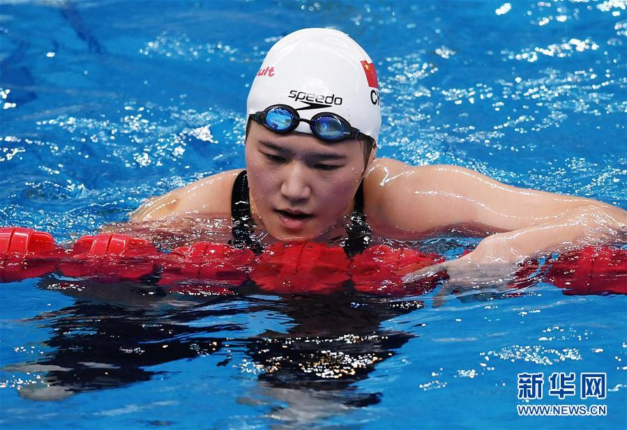 9月28日,叶诗文在比赛后。 当日,在青岛举行的2020全国游泳冠军赛暨东京奥运会达标赛女子400米个人混合泳预赛中,浙江队选手叶诗文以4分43秒93的成绩获得第四名。 新华社记者 李紫恒 摄
