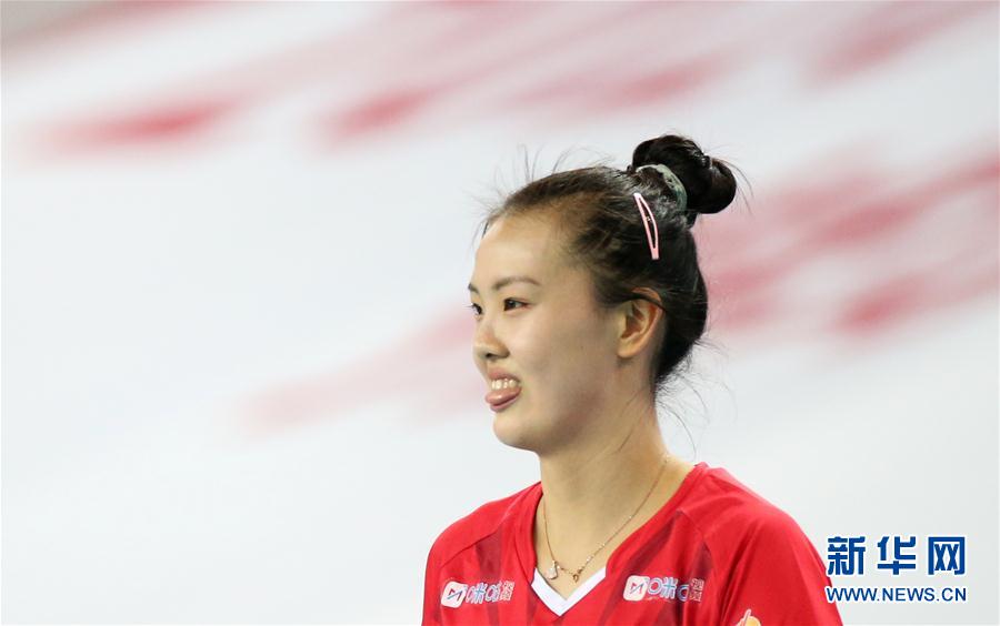 9月28日,江苏中天钢铁队球员张常宁在比赛中。 当日,在广东江门举行的2020年全国女排锦标赛第一阶段A组第六轮比赛中,江苏中天钢铁队以3比0战胜北京汽车队。 新华社记者秦朗摄