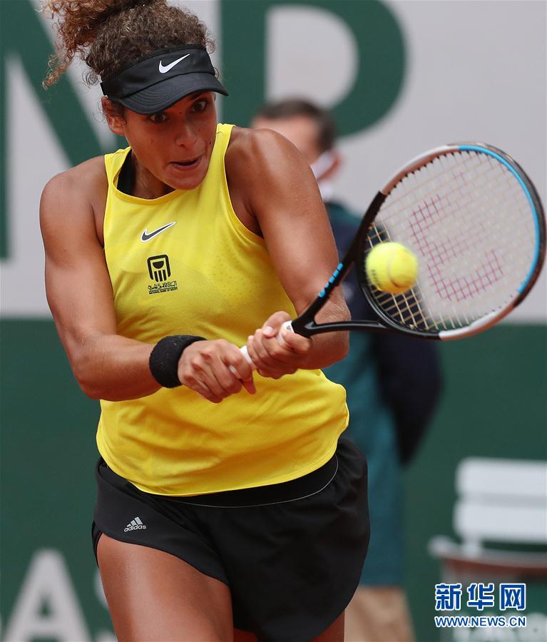 9月29日,谢里夫在比赛中回球。 当日,在法国巴黎进行的2020年法国网球公开赛女单首轮比赛中,捷克选手普利斯科娃以2比1战胜埃及选手谢里夫,晋级下一轮。 新华社记者 高静 摄