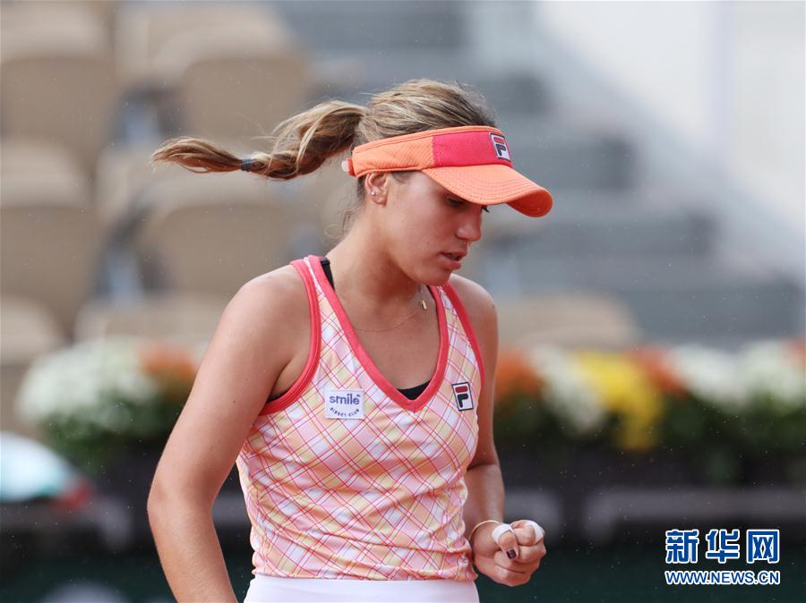9月29日,克宁在比赛中庆祝得分。 当日,在法国巴黎进行的2020年法国网球公开赛女单首轮比赛中,美国选手克宁以2比1战胜俄罗斯选手萨姆索诺娃,晋级下一轮。 新华社记者高静摄