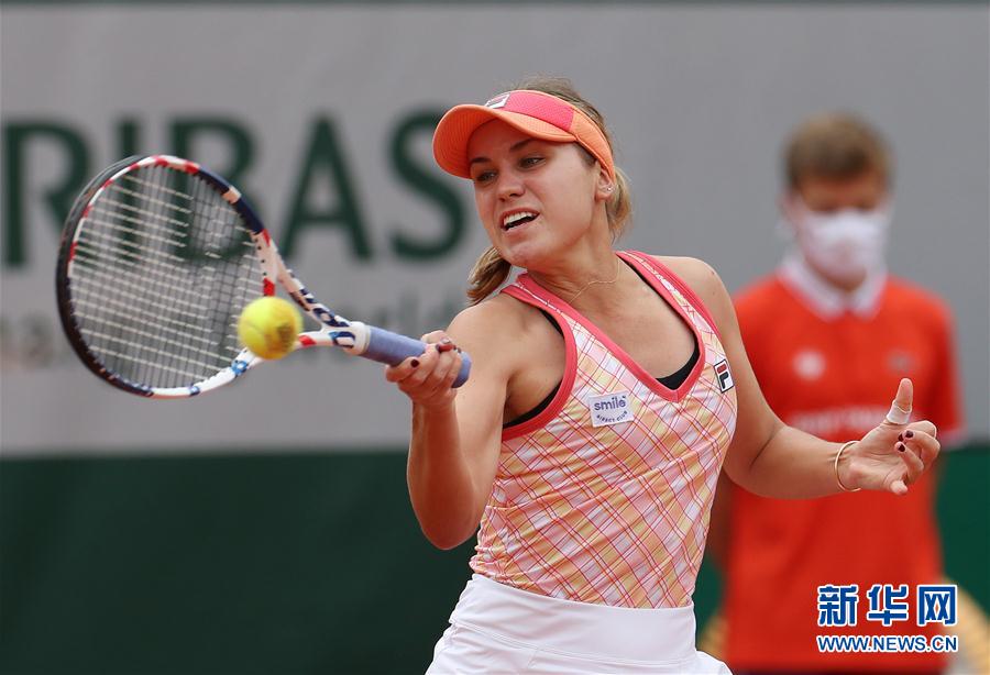 9月29日,克宁在比赛中回球。 当日,在法国巴黎进行的2020年法国网球公开赛女单首轮比赛中,美国选手克宁以2比1战胜俄罗斯选手萨姆索诺娃,晋级下一轮。 新华社记者高静摄
