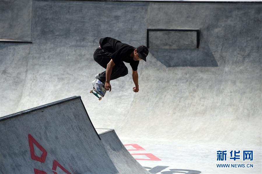 9月30日,陕西队选手高群翔在男子碗池预赛中,他以49分的成绩获得预赛第一名。 当日,中国·安徽滑板公开赛男子碗池预赛在安徽省潜山市源潭镇展开角逐。 新华社记者周牧摄