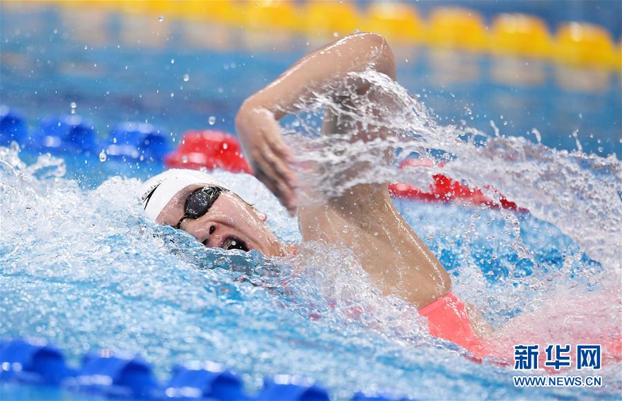 9月30日,张可在比赛中。 当日,在青岛举行的2020全国游泳冠军赛暨东京奥运会达标赛女子800米自由泳决赛中,河北泰华队选手张可以8分29秒92的成绩获得冠军。 新华社记者 陶希夷 摄