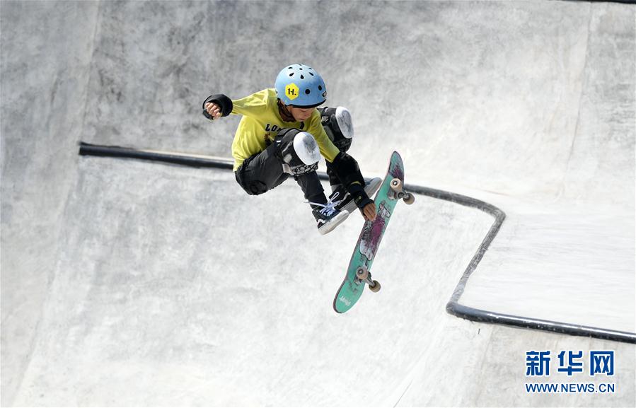 9月30日,广东队选手陈烨在男子碗池预赛中,他以44分的成绩获得预赛第三名。 当日,中国·安徽滑板公开赛男子碗池预赛在安徽省潜山市源潭镇展开角逐。 新华社记者周牧摄