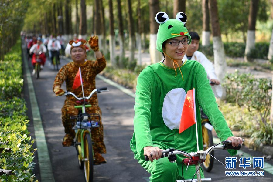 9月30日,游客参加骑行嘉年华活动。 当日,一场森林趣味骑行嘉年华活动在合肥滨湖国家森林公园举行。200余名游客通过骑行的方式倡导低碳、健康的生活理念。 新华社记者张端摄