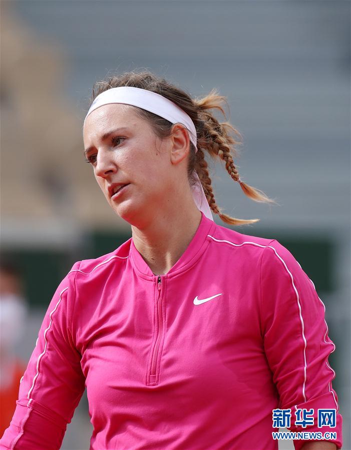 9月30日,阿扎伦卡在比赛中。 当日,在法国巴黎进行的2020年法国网球公开赛女单第二轮比赛中,白俄罗斯选手阿扎伦卡以0比2不敌斯洛伐克选手施米德洛娃,止步第二轮。 新华社记者 高静 摄