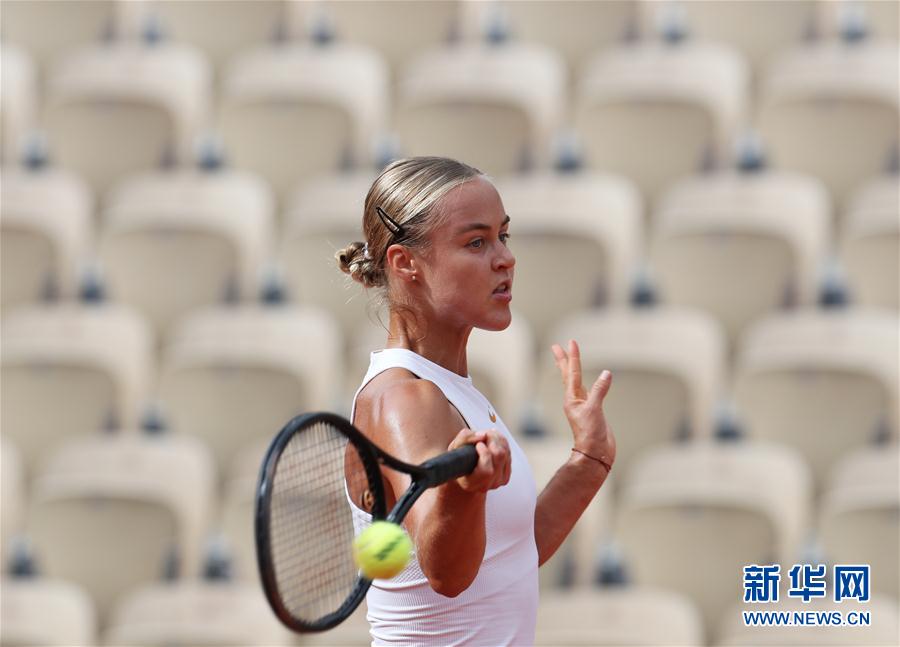 9月30日,施米德洛娃在比赛中回球。 当日,在法国巴黎进行的2020年法国网球公开赛女单第二轮比赛中,白俄罗斯选手阿扎伦卡以0比2不敌斯洛伐克选手施米德洛娃,止步第二轮。 新华社记者 高静 摄