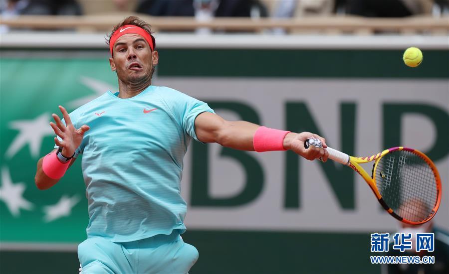 9月30日,纳达尔在比赛中回球。 当日,在法国巴黎进行的2020年法国网球公开赛男单第二轮比赛中,西班牙选手纳达尔以3比0战胜美国选手麦克唐纳,晋级第三轮。 新华社记者 高静 摄