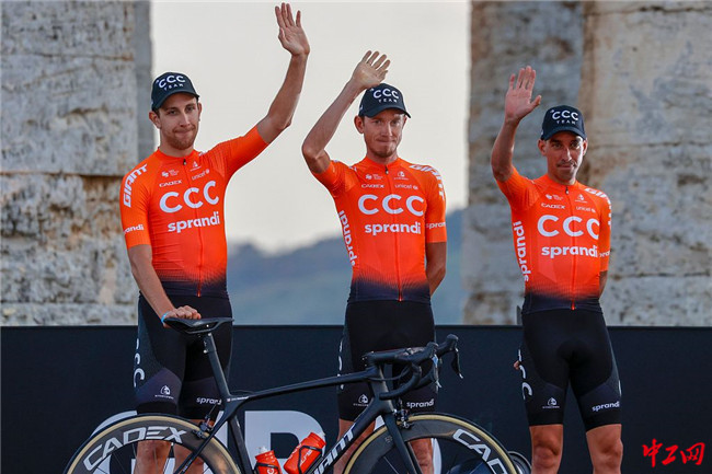 2020年10月1日,意大利帕勒莫,2020第103届意大利自行车赛开幕仪式举行。LUCA BETTINI /视觉中国