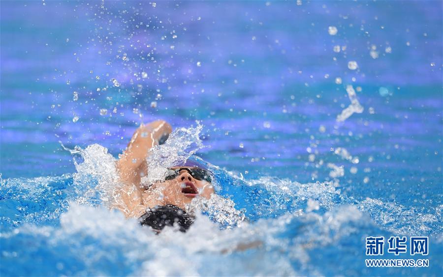 10月1日,王佳音在比赛中。 当日,在青岛举行的2020全国游泳冠军赛暨东京奥运会达标赛女子200米仰泳决赛中,山东浩沙队选手王佳音以2分10秒39的成绩获得亚军。 新华社记者陶希夷摄