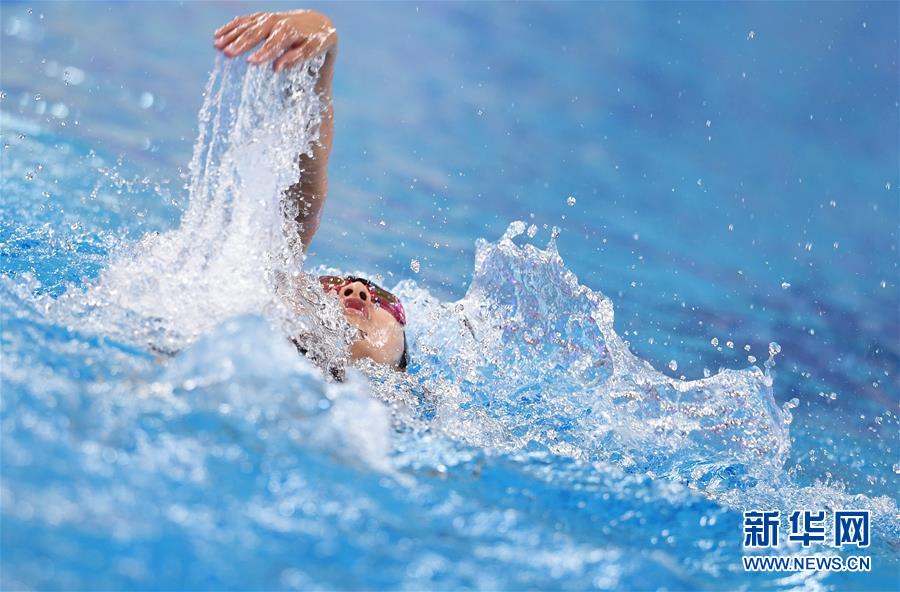 10月1日,杨一凡在比赛中。 当日,在青岛举行的2020全国游泳冠军赛暨东京奥运会达标赛女子200米仰泳决赛中,山东浩沙队选手杨一凡以2分13秒85的成绩获得季军。 新华社记者陶希夷摄