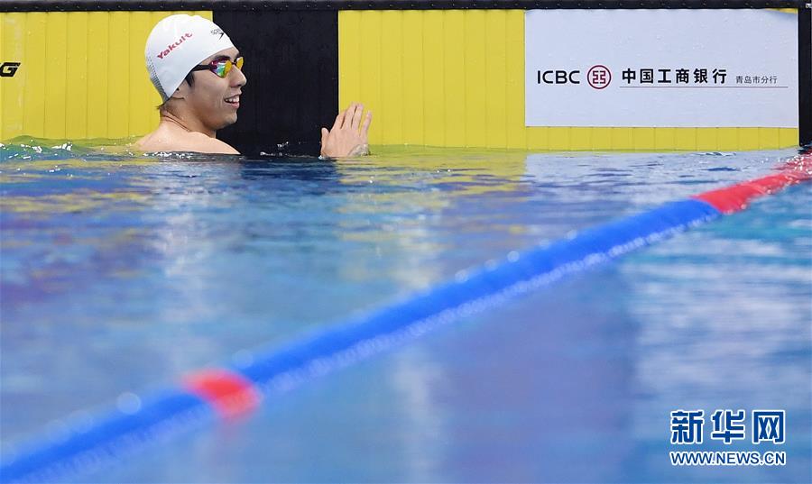 、10月1日,闫子贝在比赛后。 当日,在青岛举行的2020全国游泳冠军赛暨东京奥运会达标赛男子200米蛙泳决赛中,湖北浩沙队选手闫子贝以2分12秒14的成绩获得冠军。 新华社记者陶希夷摄