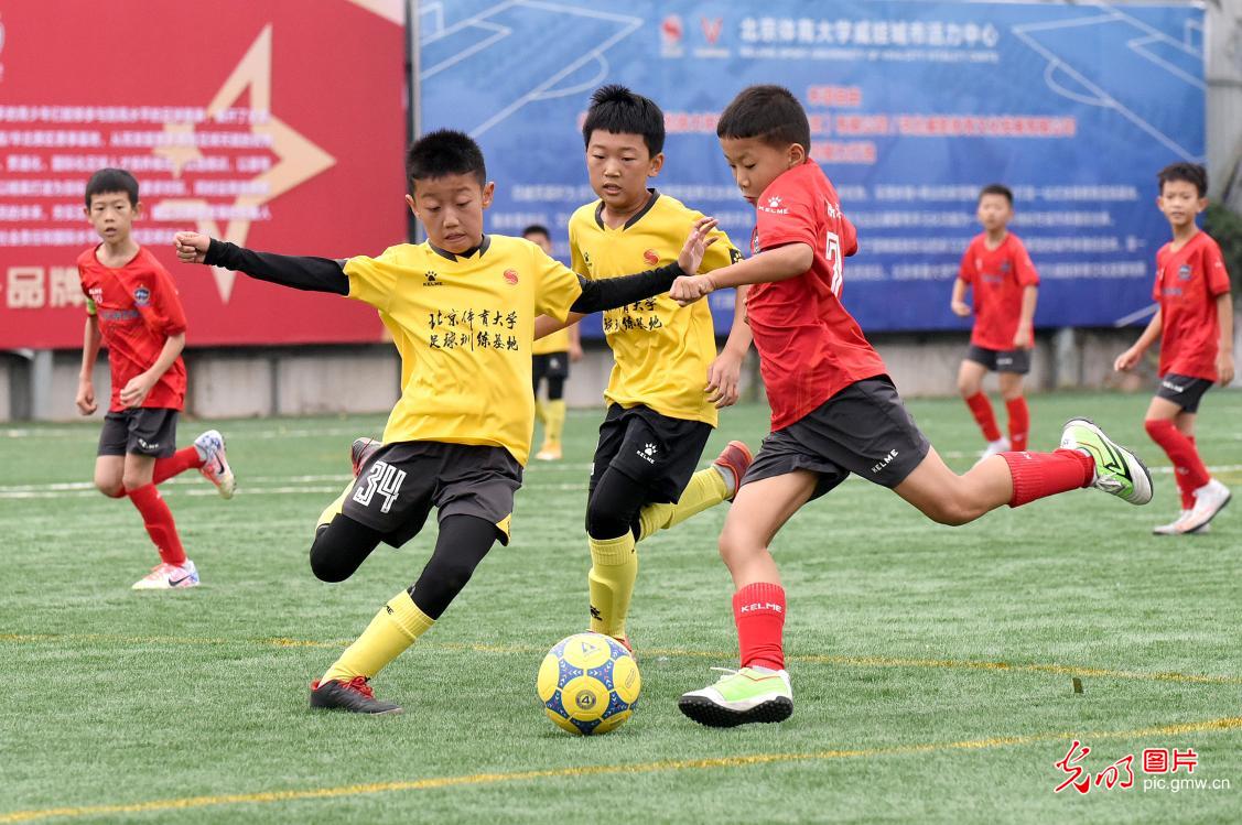 2020年10月3日,河北省邯郸市第一届"威娃杯"足球小将邀请赛在北京体育大学(邯郸)足球训练基地开赛,来自北京、天津、浙江、河北、河南、山东、辽宁等地的33支青少年足球队将进行为期5天的比赛,以足球竞技乐享国庆假期。(郝群英摄/光明图片)