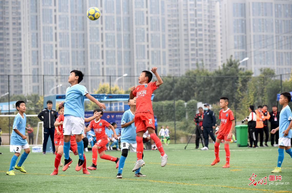 2020年10月3日,河北省邯郸市第一届"威娃杯"足球小将邀请赛在北京体育大学(邯郸)足球训练基地开赛,来自北京、天津、浙江、河北、河南、山东、辽宁等地的33支青少年足球队将进行为期5天的比赛,以足球竞技乐享国庆假期。(郝群英摄/光明图片)