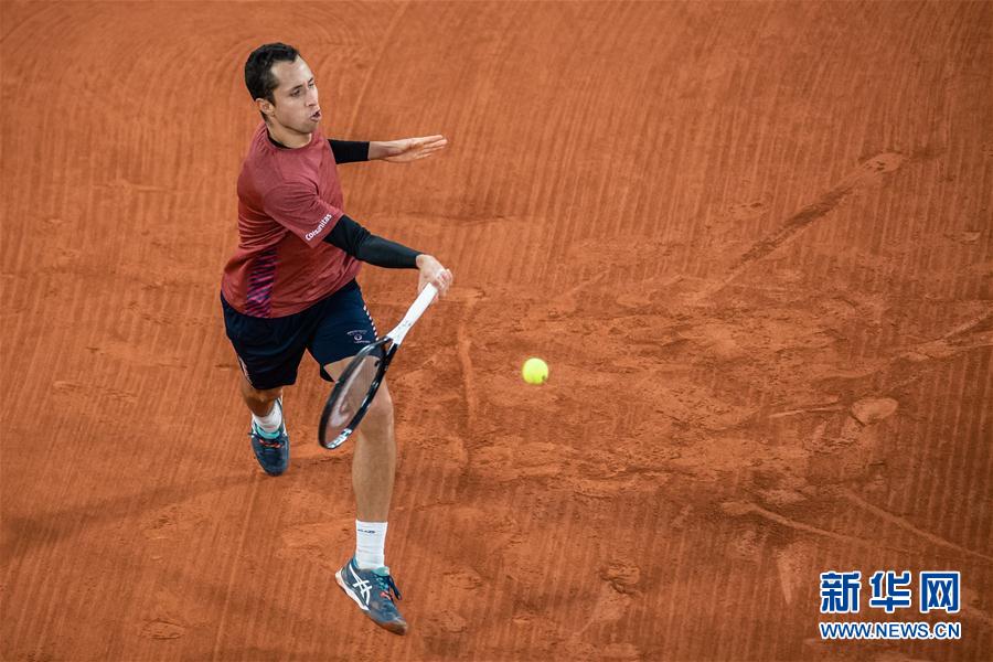 10月3日,加兰在比赛中回球。 当日,在法国巴黎进行的2020年法国网球公开赛男单第三轮比赛中,塞尔维亚选手焦科维奇以3比0战胜哥伦比亚选手加兰,晋级16强。 新华社发(奥雷利安·莫里萨尔摄)