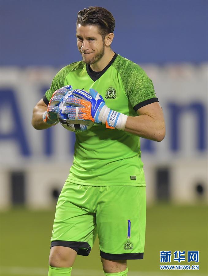 10月3日,沙特艾纳斯队守门员布拉德·琼斯在比赛中。 当日,在卡塔尔首都多哈进行的亚洲足球冠军联赛半决赛中,伊朗波斯波利斯队和沙特艾纳斯队在120分钟内战成1比1平,最终伊朗波斯波利斯队在点球大战中以5比3胜出,晋级决赛。 新华社发(尼库摄)