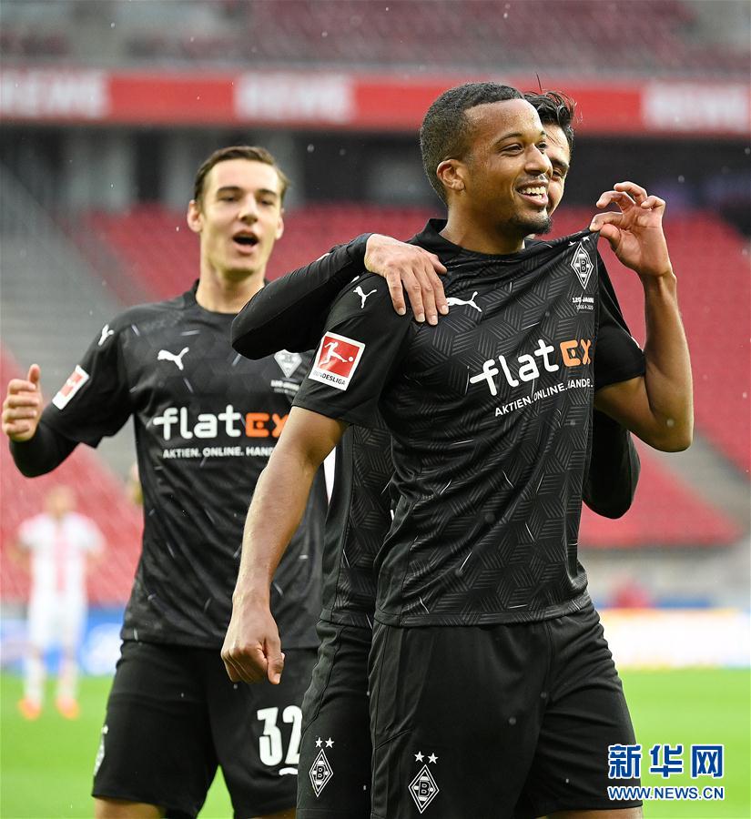 10月3日,门兴格拉德巴赫队球员普莱亚(前)在比赛中庆祝进球。 当日,在2020-2021赛季德国足球甲级联赛第三轮比赛中,门兴格拉德巴赫队客场以3比1战胜科隆队。 新华社发(乌尔里希·胡夫纳格尔 摄)