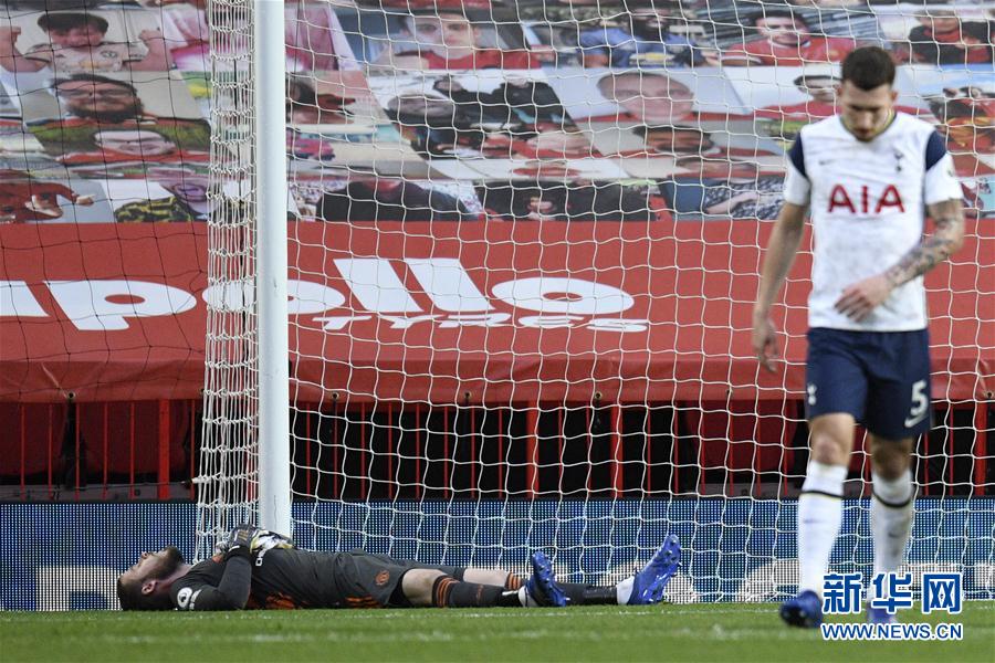 10月4日,曼联队守门员德赫亚(左)在比赛中。 当日,在2020-2021赛季英格兰足球超级联赛第四轮比赛中,曼彻斯特联队主场以1比6不敌托特纳姆热刺队。 新华社/美联