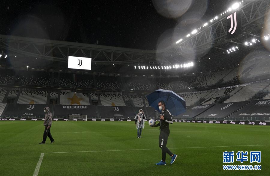 10月4日,主裁判多韦里(前)对场地进行赛前检查。 当日,因那不勒斯队有球员新冠病毒检测结果呈阳性,那不勒斯队未能抵达都灵出战对阵尤文图斯队的2020-2021赛季意大利足球甲级联赛第三轮比赛。 新华社发(阿尔贝托·林格利亚摄)