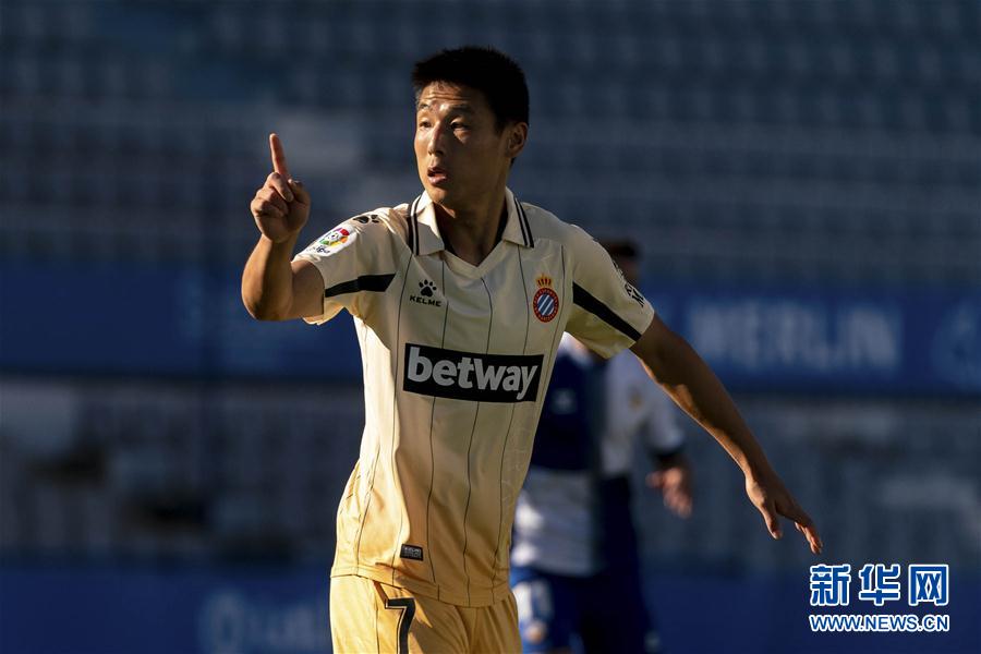 10月4日,西班牙人队球员武磊在比赛中。 当日,在2020-2021赛季西班牙足球乙级联赛第四轮比赛中,西班牙人队客场以1比0战胜萨瓦德尔队。 新华社发(胡安·戈萨摄)
