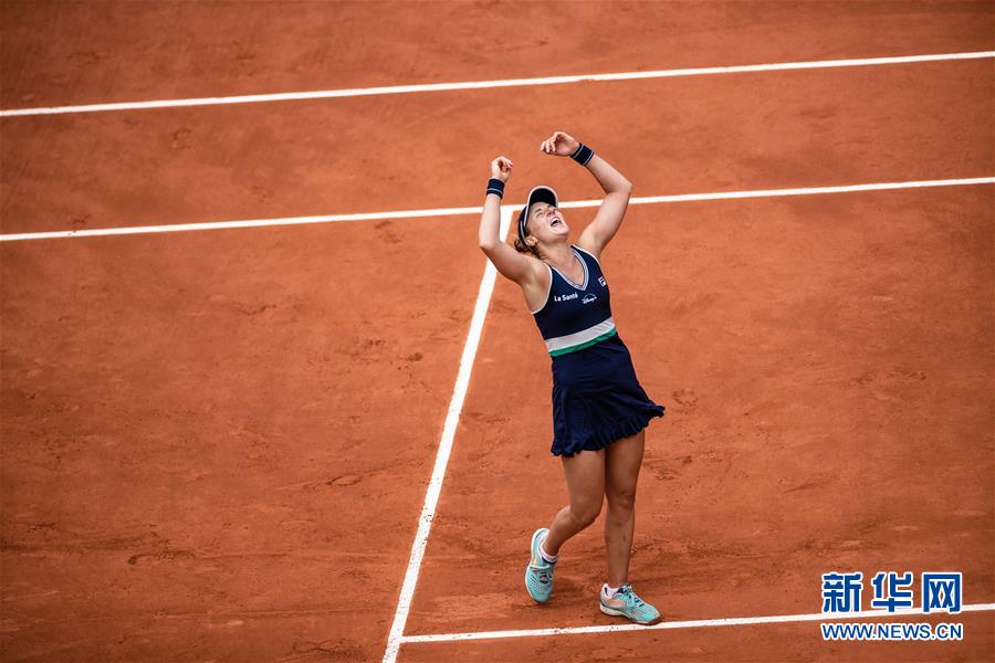 10月6日,波多罗斯卡庆祝胜利。 当日,在法国巴黎进行的2020年法国网球公开赛女单四分之一决赛中,阿根廷选手波多罗斯卡以2比0战胜乌克兰选手斯维托丽娜,晋级四强。 新华社发(奥雷利安·莫里萨尔摄)