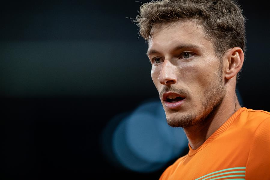 10月7日,布斯塔在比赛中。 当日,在法国巴黎进行的2020年法国网球公开赛男单四分之一决赛中,西班牙选手布斯塔以1比3不敌塞尔维亚选手焦科维奇,无缘四强。 新华社发(奥雷利安·莫里萨尔摄)