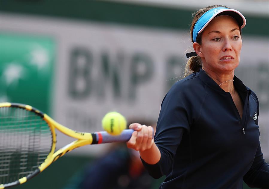 10月7日,柯林斯在比赛中回球。 当日,在法国巴黎进行的2020年法国网球公开赛女单四分之一决赛中,美国选手柯林斯以1比2不敌美国选手克宁,无缘四强。 新华社记者 高静 摄
