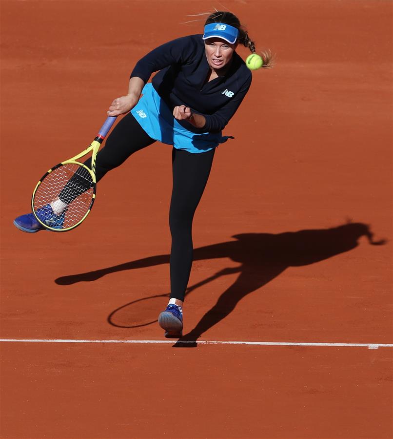 10月7日,柯林斯在比赛中发球。 当日,在法国巴黎进行的2020年法国网球公开赛女单四分之一决赛中,美国选手柯林斯以1比2不敌美国选手克宁,无缘四强。 新华社记者 高静 摄