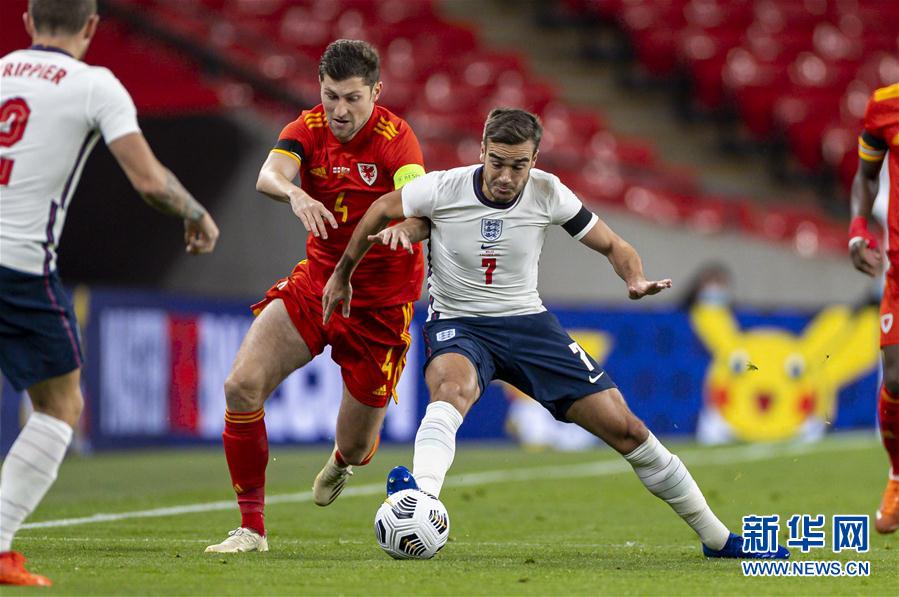 10月8日,英格兰队球员温克斯(右)与威尔士队球员戴维斯在比赛中拼抢。 当日,在英国伦敦进行的一场国际足球友谊赛中,英格兰队以3比0战胜威尔士队。 新华社发