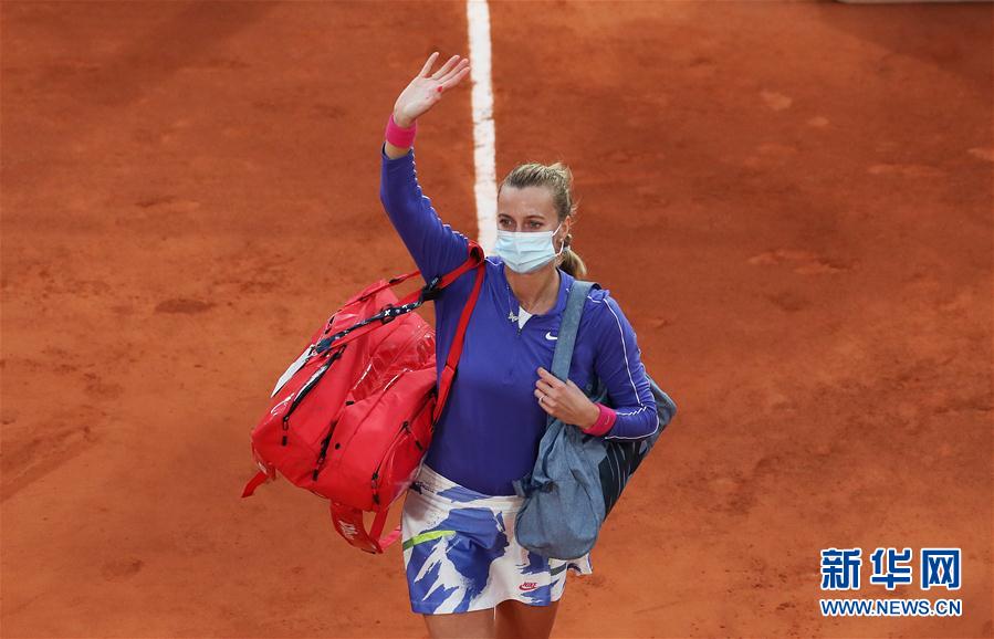 10月8日,科维托娃在赛后向观众致意。 当日,在法国巴黎进行的2020年法国网球公开赛女单半决赛中,捷克选手科维托娃以0比2不敌美国选手克宁,无缘决赛。 新华社记者高静摄