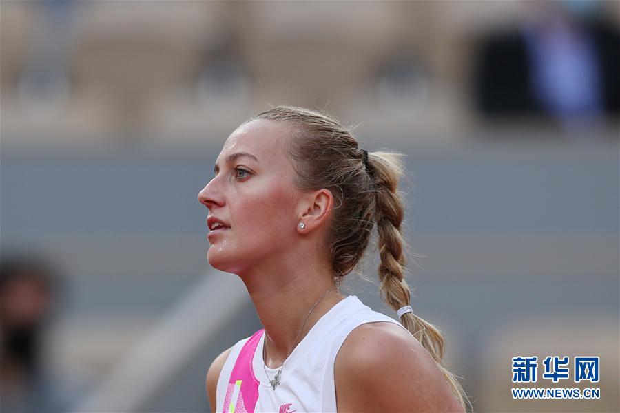 10月8日,科维托娃在比赛中。 当日,在法国巴黎进行的2020年法国网球公开赛女单半决赛中,捷克选手科维托娃以0比2不敌美国选手克宁,无缘决赛。 新华社记者高静摄